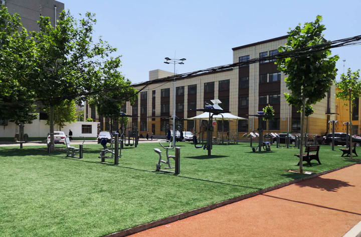 锐强体育作为全民健身解决方案供应及服务商,有幸参与了杨家埠体育公园建设,优质的产品质量,新颖的器材造型,深受当地健身群众的喜爱。